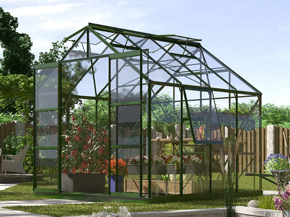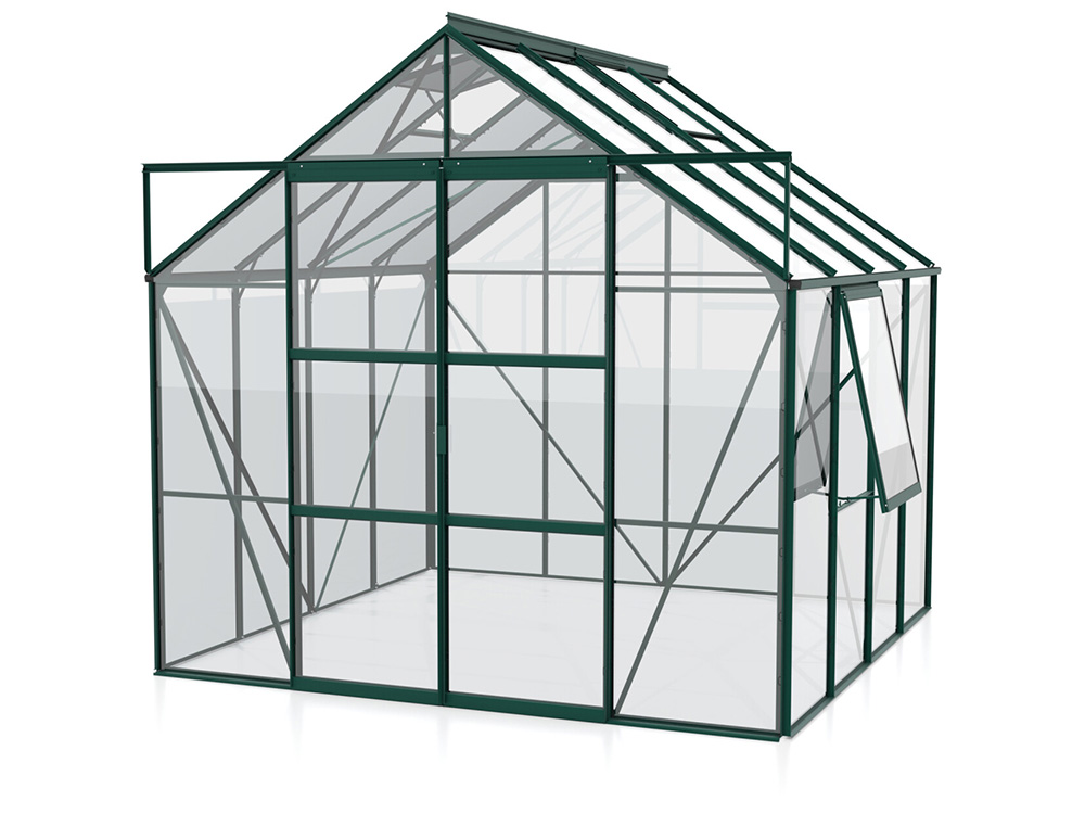 Jupiter a une hauteur impressionnante de 248 cm et une largeur de 257 cm. Une hauteur de bord de toit de 154 cm offre plus d’espace pour la tête et d’espace de travail. Une résistance supplémentaire est obtenue grâce à des plaques d’angle et des renforts dans toute la serre, afin que vous puissiez exercer plus de tension sans souci.