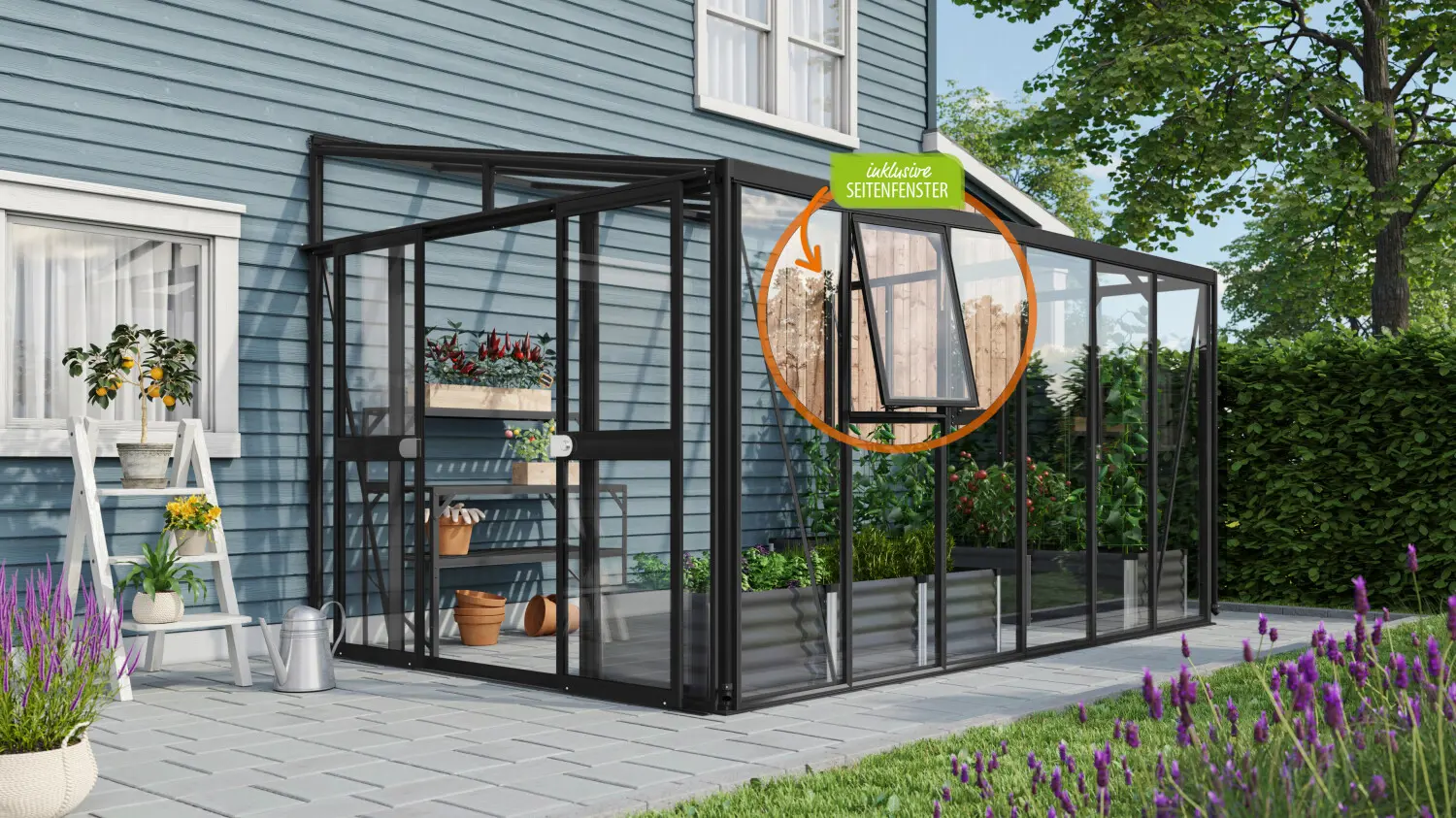 Les parois latérales sont faites de verre de sécurité (ESG) cristallin de 3 mm d’épaisseur , tandis que le toit est équipé de plaques de polycarbonate à double paroi de 10 mm d’épaisseur. Celles-ci protègent les plantes des rayons du soleil éclatant, maintiennent une température stable et résistent aux branches qui tombent.