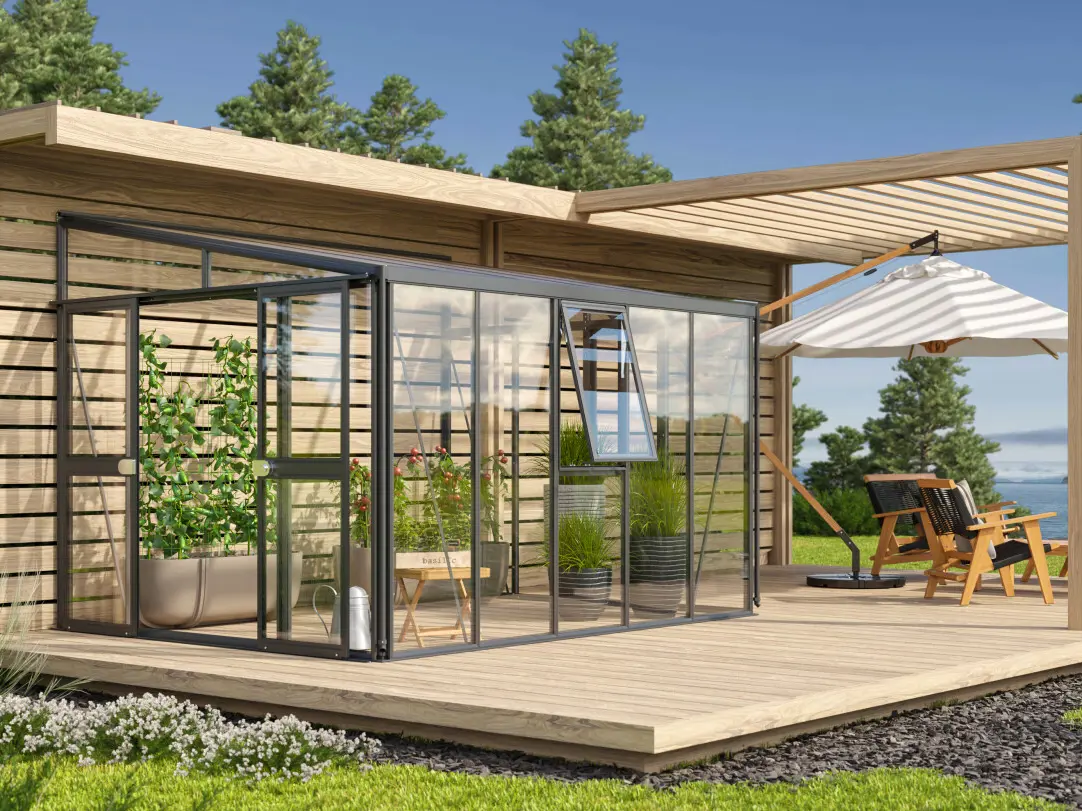 Cette luxueuse serre murale noire de Vitavia est idéale pour la culture de légumes et de fruits, mais elle sert aussi souvent de salon supplémentaire attrayant pour se détendre. Le design de haute qualité présente des profils uniques à double châssis, offrant une résistance et une stabilité supplémentaires.