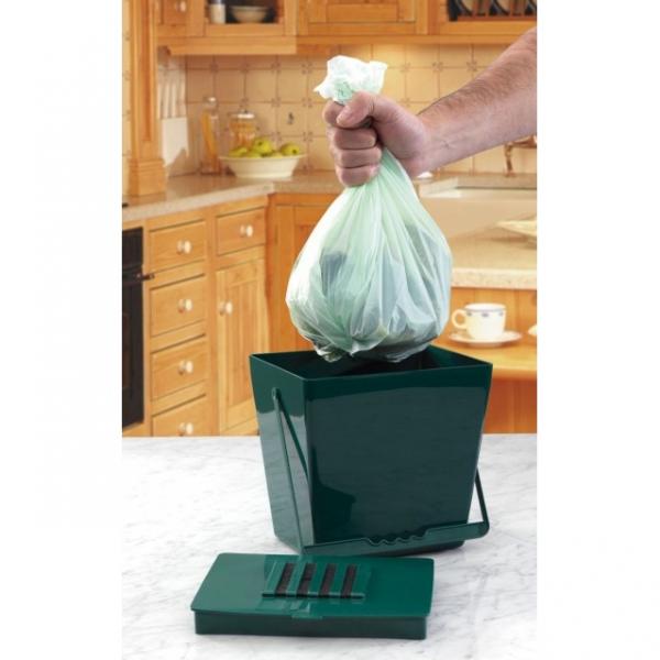 Roulez avec 20 sacs biodégradables adaptés à la poubelle de cuisine de 5 litres.