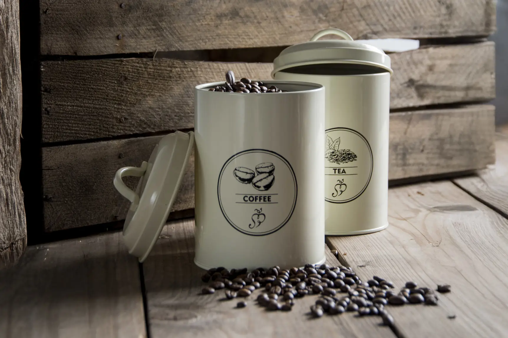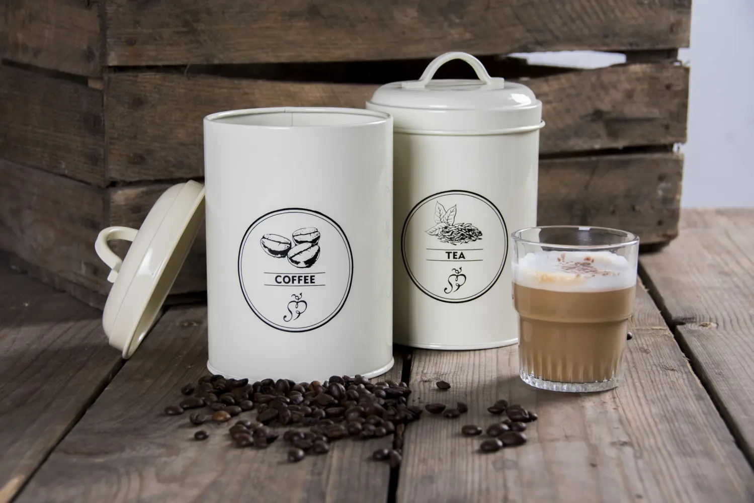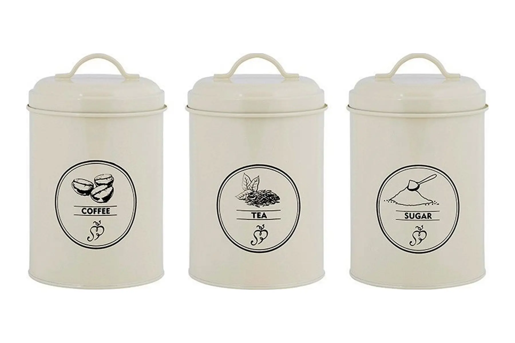 Les trois boîtes de rangement sont en métal et possèdent un couvercle bien étanche avec poignée. L’inscription et le dessin donnent aux boîtes un aspect vintage et elles sont aussi magnifiques sur le plan de travail.