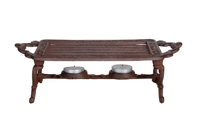 Grâce aux poignées pratiques sur les côtés, cette source de chaleur est facile à déplacer. Ce chauffe-plat, avec son design gracieux, est magnifique sur la table festive ! Le motif décoratif en fonte est coulé à la main selon un artisanat et une tradition séculaires !