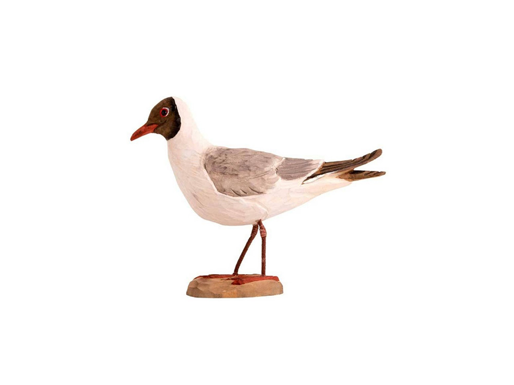 Mouette à tête noire en bois traditionnelle. La mouette à tête noire est représentée grandeur nature et peinte avec une peinture écologique.
