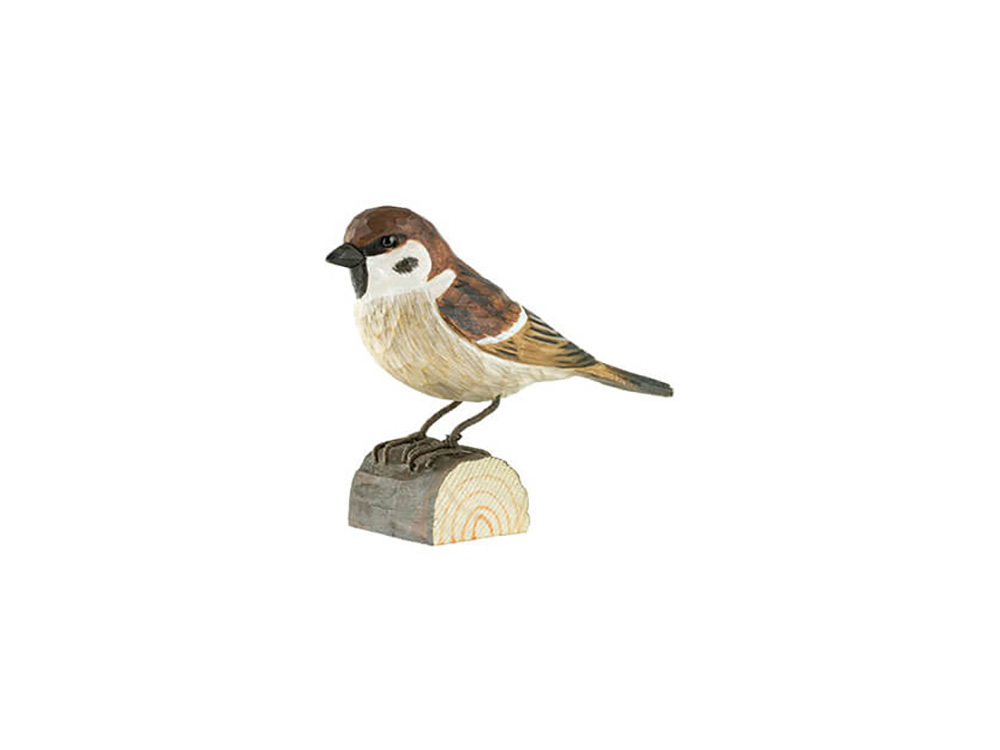 Le moineau arboricole (Passer montanus) est représenté grandeur nature et peint avec une peinture écologique.
