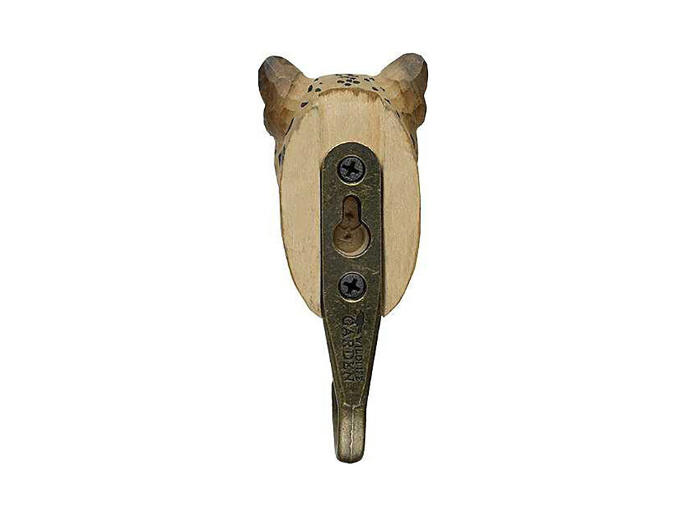 En bas de la tête se trouve un crochet en métal couleur bronze avec lequel on peut fixer des torchons de cuisine, des peignoirs, des bijoux, des clés, entre autres,.... .