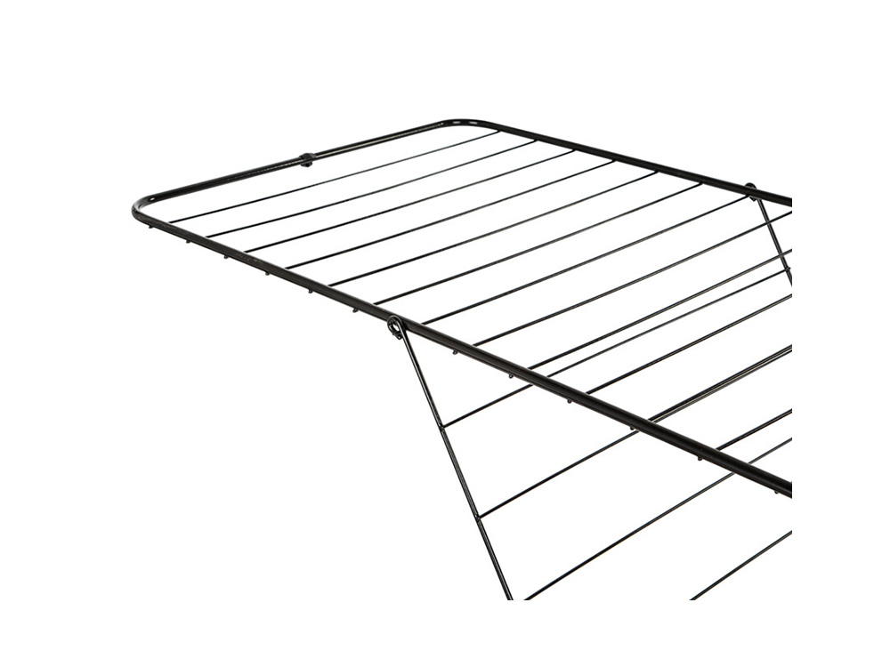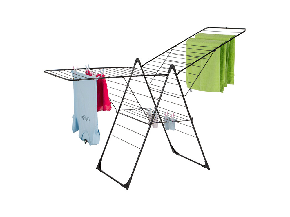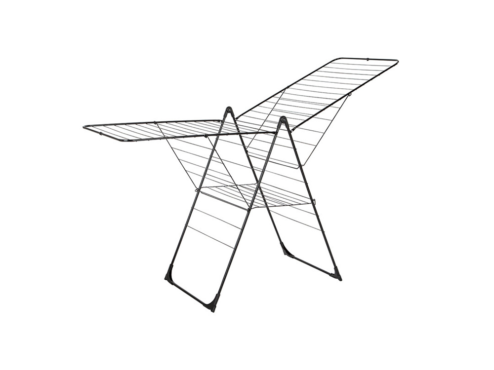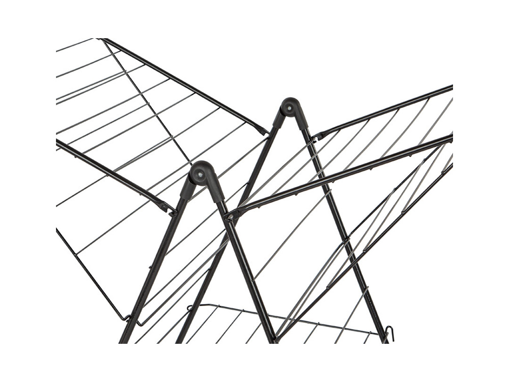 Ce grand séchoir modèle T possède un impressionnant 33 mètres de fil de séchage, parfait pour les vêtements, serviettes et draps courts à longs. Il peut être facilement déplié et empilé de façon compacte lorsque le linge est sec. Grâce aux charnières solides et aux pieds renforcés, le séchoir est toujours stable, même lorsqu’il est fortement chargé. Si vous avez peu d’espace, le rack peut aussi être ouvert d’un côté.