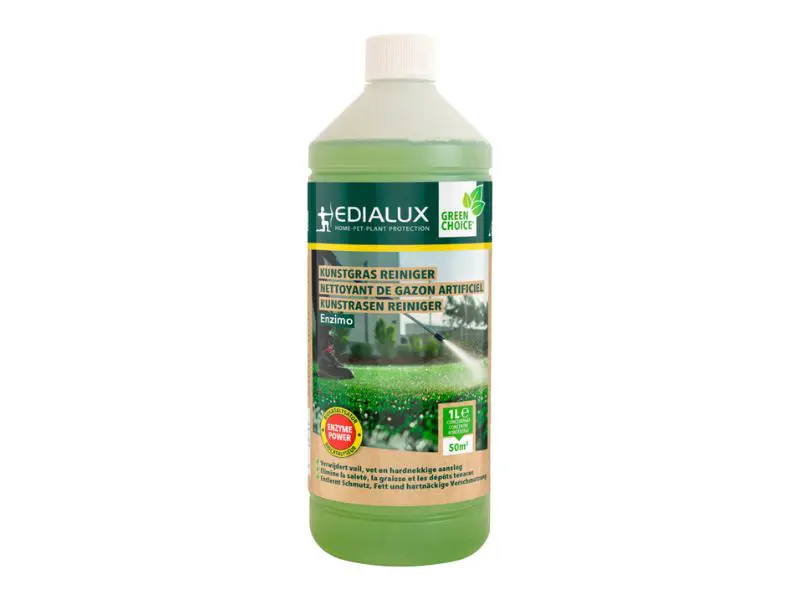 Le nettoyant artificiel pour gazon Edialux Enzimo est un agent nettoyant liquide à base d’enzymes. Il élimine rapidement et facilement la graisse, le pollen, les particules particulaires, les fientes, la suie, les dépôts de fumée et d’autres pollutions atmosphériques provenant de tous types de gazon artificiel. Le produit rafraîchit, nettoie et favorise la perméabilité à l’eau, évitant ainsi un gazon artificiel sale et glissant, ce qui optimise les caractéristiques de jeu. Les enzymes spécialement sélectionnées dans le produit décomposent la pollution de la même manière que les enzymes de notre corps aident à digérer les aliments. Une douche de pluie lave la saleté cassée pour vous et réactive les enzymes pour un effet prolongé.