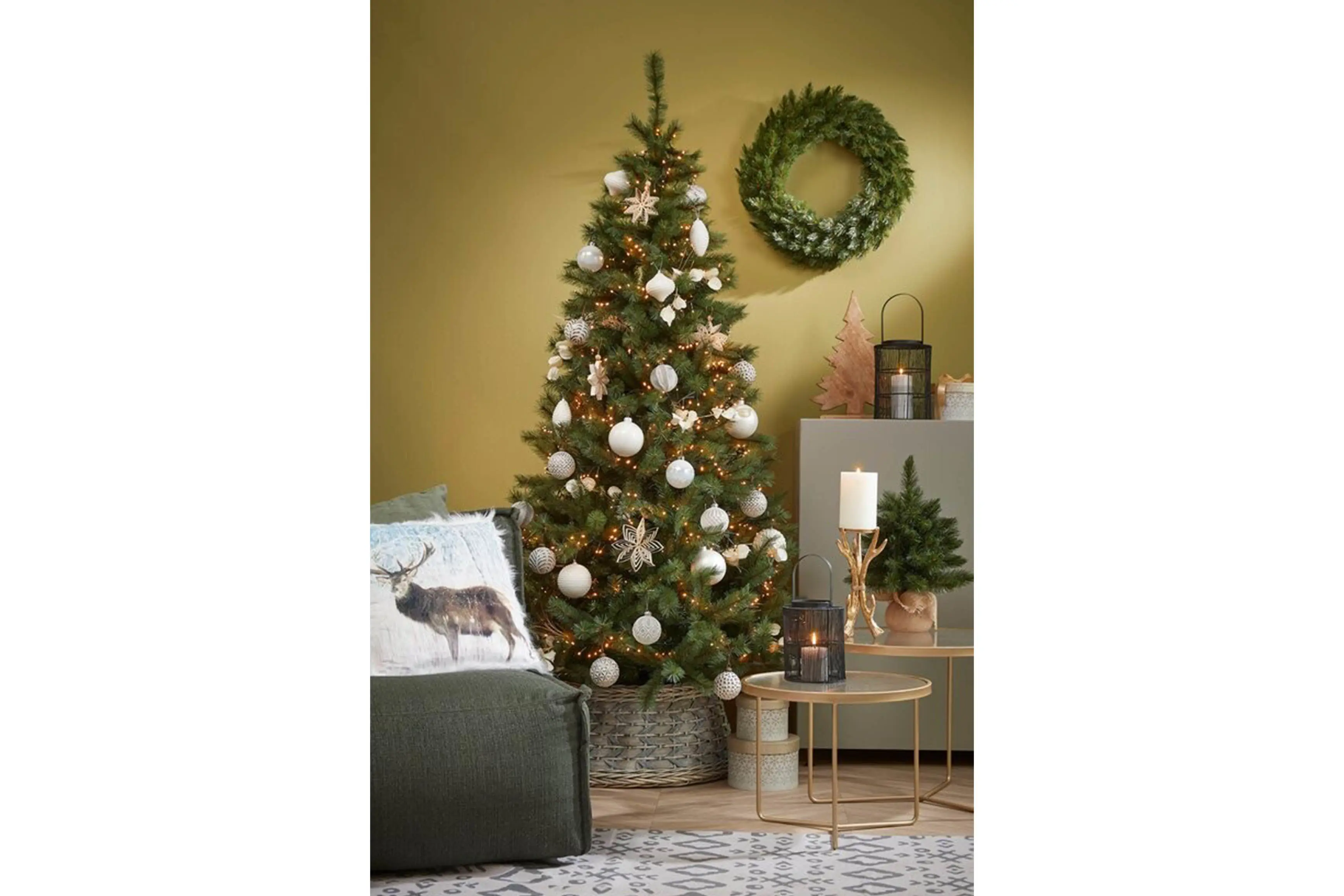 Cette couronne de Noël Forêt Givrée de Triumph Tree a quelque chose de spécial. Chaque aiguille a une pointe givrée à cause du noyau blanc, ce qui donne l’impression que la couronne vient tout droit d’une forêt de pins d’hiver. Un bon début pour un Noël blanc !