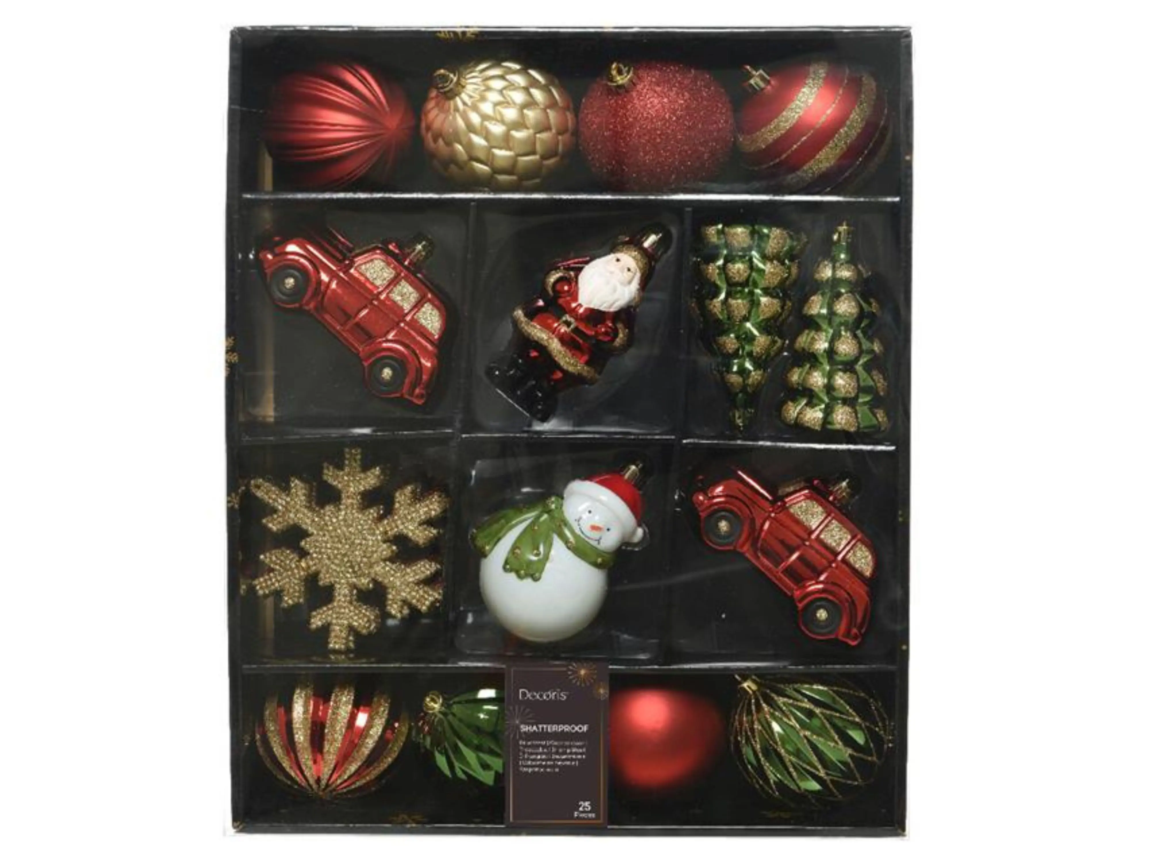 Boîte de mélange de boules de Noël Decoris rouge/vert/or