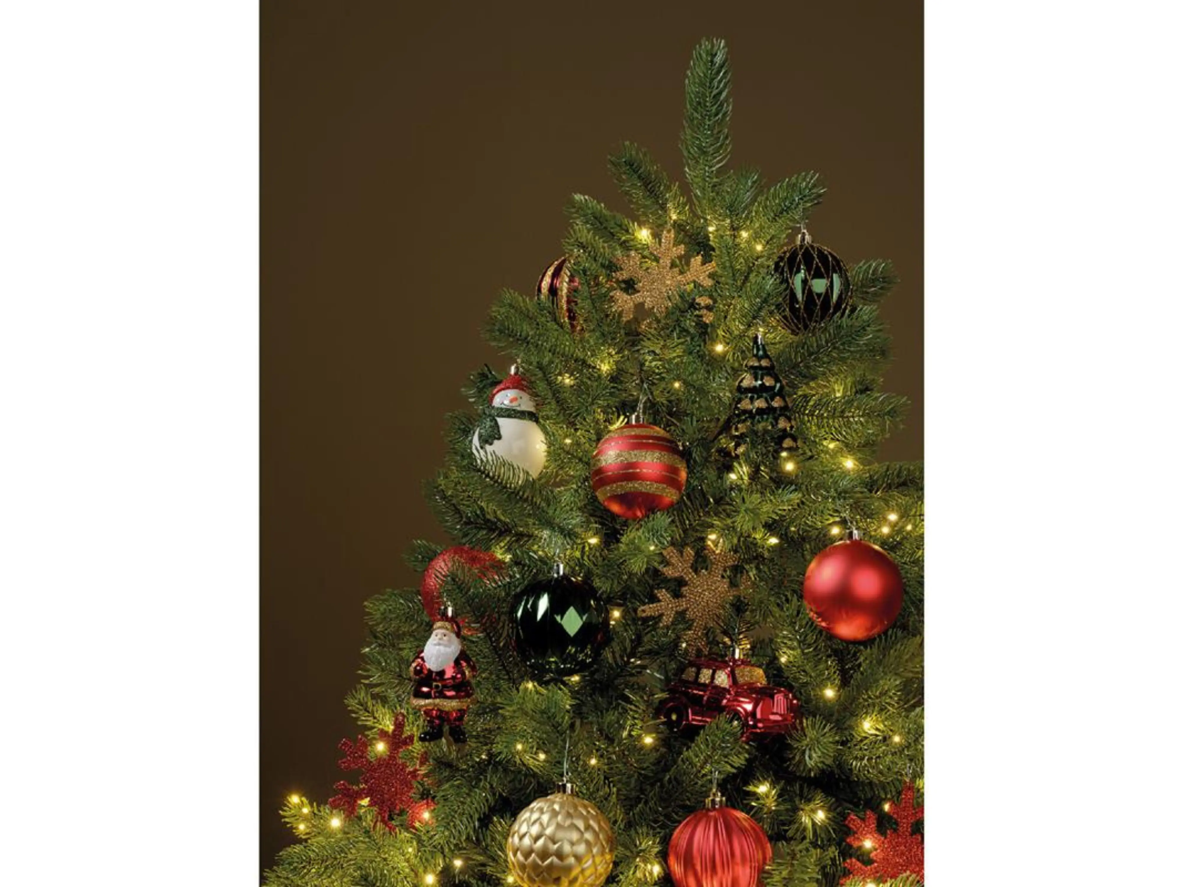 Que les fêtes arrivent avec la magnifique boîte de mélange de boule de Noël de Decoris. Ce set se compose de 25 balles de Noël en plastique aux couleurs classiques de Noël : rouge, vert et or. En plus des boules de Noël, la boîte de mélange contient aussi des objets typiques de Noël comme un Père Noël et un bonhomme de neige, qui donnent un aspect ludique à votre sapin.