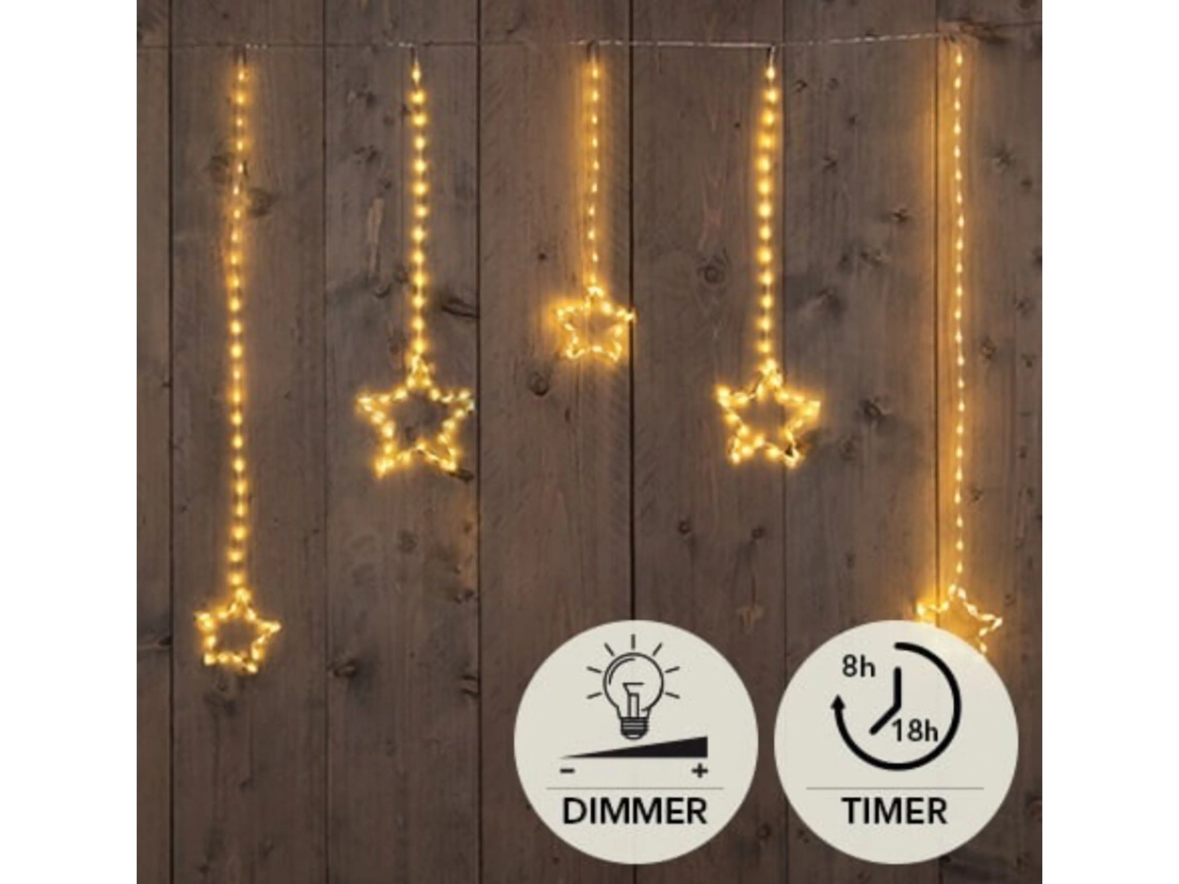 Rideau en étoile éclairé avec minuterie et gradateur LED classique 186 - 5 brins